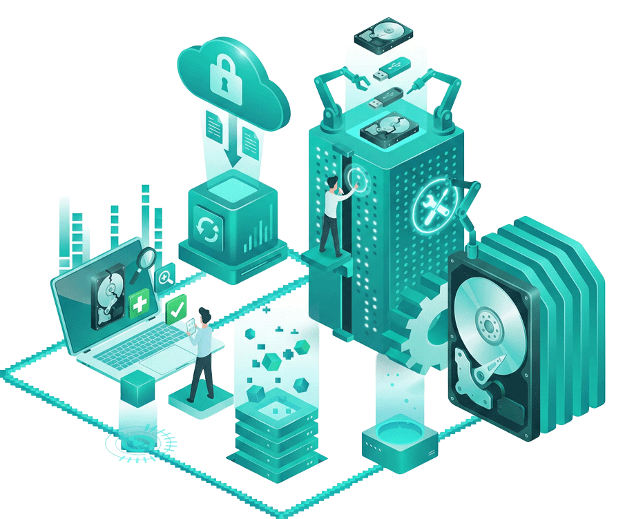 速度・安全性・再現性を重視して対応します。対象機器をお預かりし、環境に合わせて復旧作業を進めます。